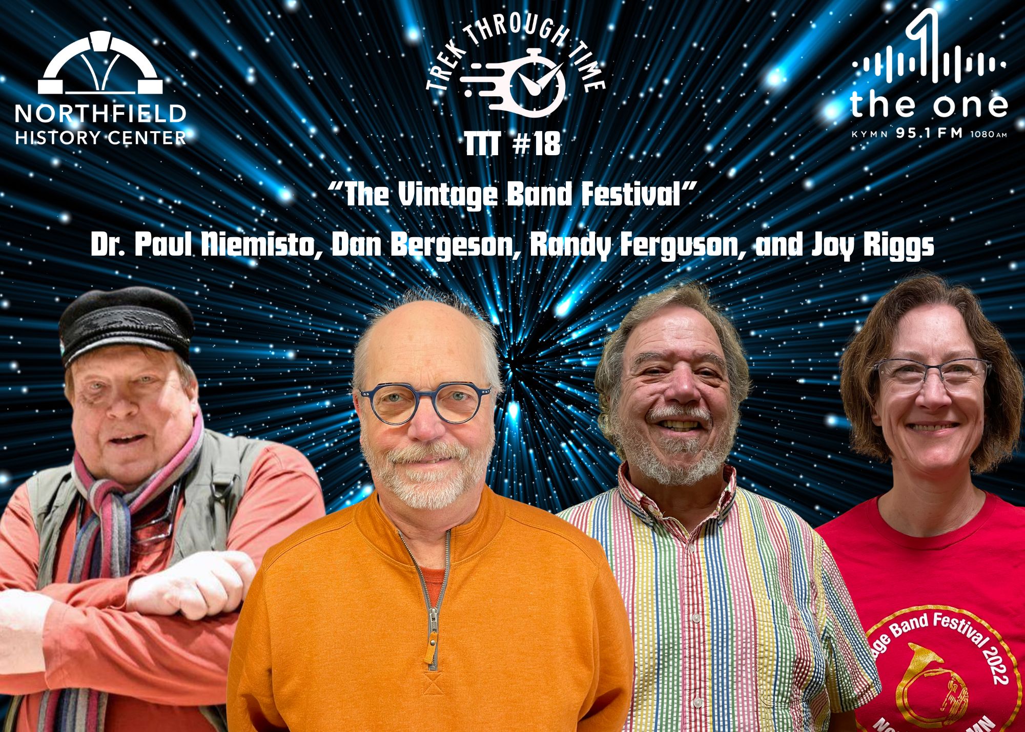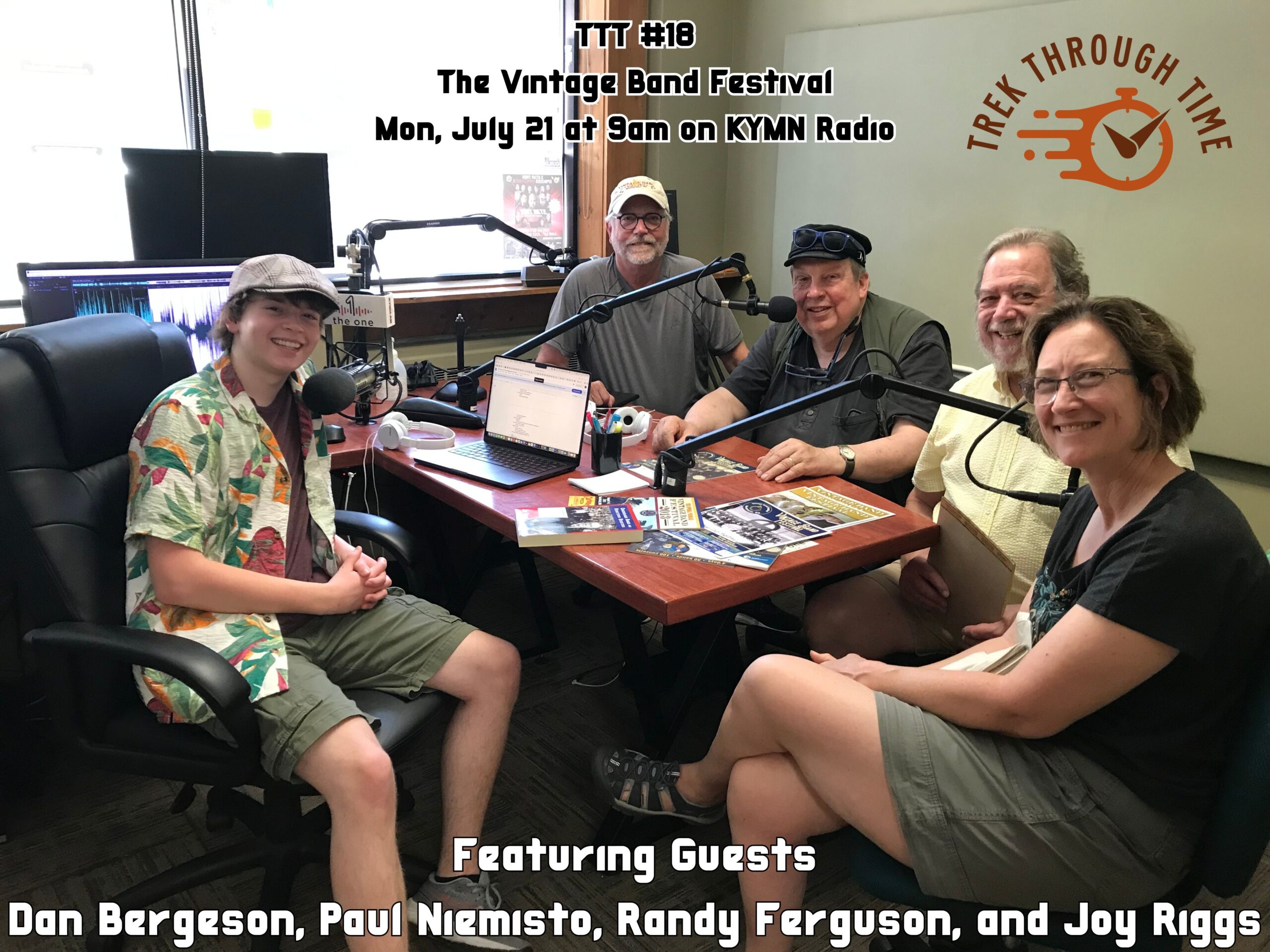This week four members of the Vintage Band Festival board of directors joined host Kosmo Esplan on his KYMN radio show “Trek Through Time.” The hour-long interview explores the history of the festival: how and when the festival was begun, what inspired its creation, and the challenges and achievements that the organization has experienced during the past 20 years.