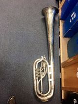 This horn was spotted in a Division Street shop window in by Doug Condon and Elsa Condon, members of 1st Brigade Band of Watertown, Wisconsin, while in Northfield, MInnesota for Vintage Band Festival 2013. The two talked with the shop owner, Devin Johnson. Mr. Johnson had found this piece of musical history in a Twin Cities scrap yard about to be melted down. The shop owner purchased the scrap and was going to make jewelry out of the parts.