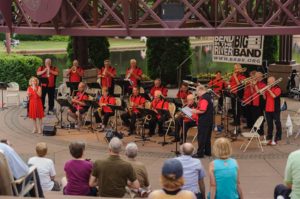 Street dances have been a part of Vintage Band Festival for many years. Providing the soundtrack for the 2019 Victory Dance is the Bend in the River Big Band from the Mankato area. The band formed in 1987 from alumni of Gustavus Adolphus College under the direction of Dr. Mark Lammers. This 19-piece ensemble is currently led by Bob Hallquist, who also plays trumpet and percussion. The band’s vocalist is Linnea Marrin. Everyone should bring their dancin’ shoes and be ready to swing!