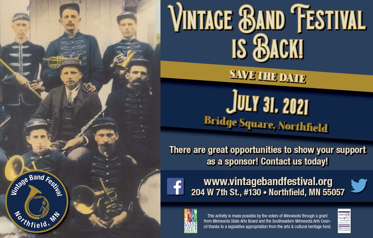 If you are donating by check, send your gift to: Vintage Band Festival 204 7th St W #130 Northfield, MN 55057
